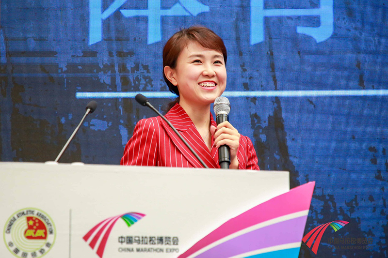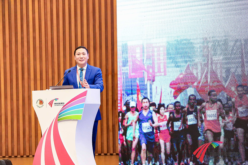 ▲ 國家體育總局田徑運動管理中心黨委書記、中國田徑協(xié)會副主席王楠女士發(fā)表“中國馬拉松 共創(chuàng)美好未來”的主題演講