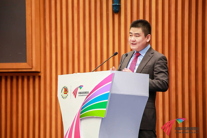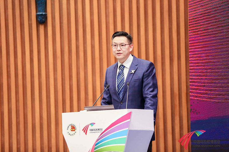 ▲ 廈門文廣傳媒集團有限公司副總經(jīng)理、廈門文廣體育有限公司董事長齊冰先生發(fā)表“奔向世界的廈門馬拉松”主題演講