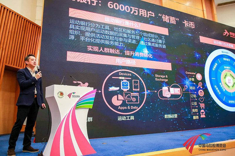 ▲ 阿里體育路跑總經(jīng)理楊勇先生發(fā)表“縱馬金陵之縱與橫——淺談馬拉松賽事運營的深化及以賽事為核心的產(chǎn)業(yè)廣度發(fā)展 “主題演講