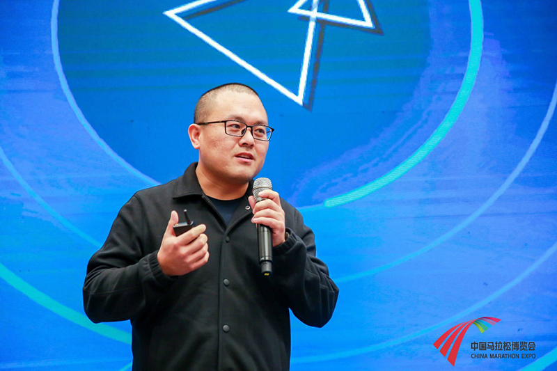 ▲ 江蘇問源體育科技有限公司執(zhí)行總裁李延明先生發(fā)表“大數(shù)據(jù)時代的馬拉松運營 “主題演講