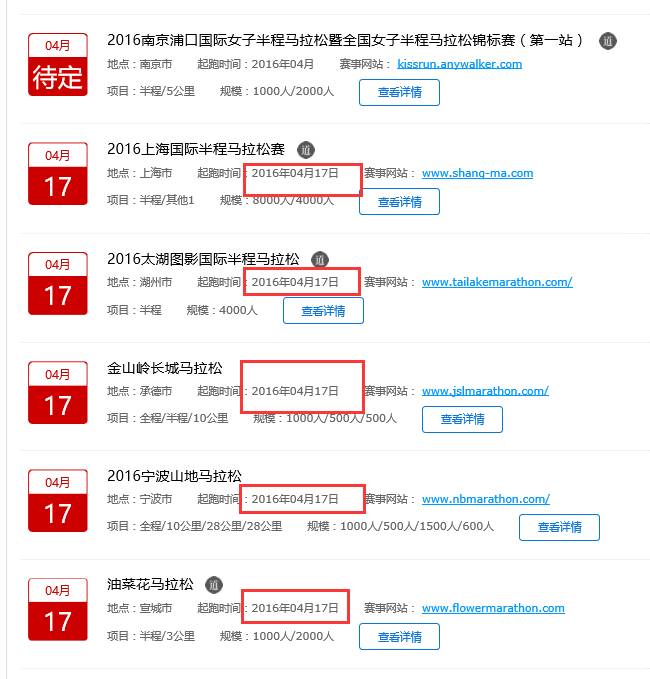 4月17日,也有5場馬拉松,詳見下圖: