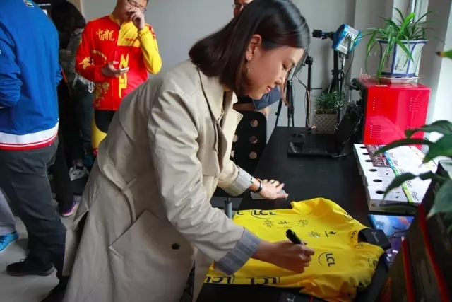 受邀嘉賓在環(huán)法百年紀(jì)念黃衫簽名留念