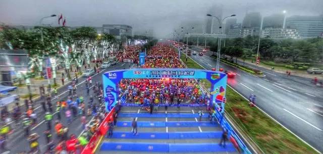 1月8日上午7點(diǎn)30分,隨著?谑腥嗣裾形N、常務(wù)副市長(zhǎng)巴特爾先生、?谑腥嗣裾笔虚L(zhǎng)孫世文先生、?谑腥嗣裾泵貢(shū)長(zhǎng)林明先生、?谑形幕瘡V電出版體育局局長(zhǎng)富天放女士、富力地產(chǎn)集團(tuán)副總裁兼海南區(qū)域公司董事長(zhǎng)趙沨先生以及中國(guó)平安人壽保險(xiǎn)股份有限公司總經(jīng)理助理秦旭輝先生等領(lǐng)導(dǎo)一行人于海航日月廣場(chǎng)起點(diǎn)處一同鳴槍,近1.5萬(wàn)名海馬參賽選手用奔跑的形式拉開(kāi)了2017平安·富力?隈R拉松賽序幕。
