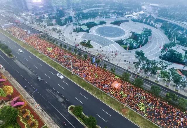 近1.5萬(wàn)名選手匯成的歡樂(lè)橙色海洋將于起點(diǎn)出發(fā)