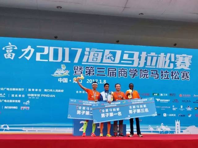 富力地產(chǎn)集團(tuán)副總裁兼海南區(qū)域公司董事長(zhǎng)趙沨先生為2017平安·富力?隈R拉松男子全程前三頒獎(jiǎng)
