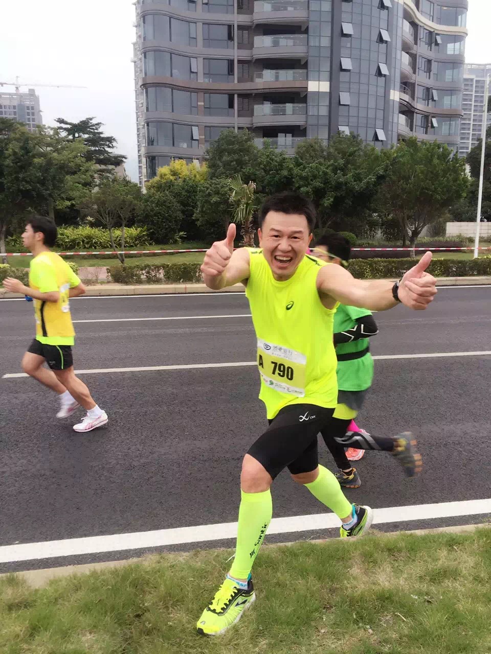 比賽當(dāng)日,細(xì)雨稍停,比賽線路沿福州閩江江濱大道設(shè)置,盡顯福州“三山兩塔一江”中閩江之閩都風(fēng)情。在林新的帶領(lǐng)下,這群可愛(ài)的跑友在平坦開(kāi)闊的賽道上快樂(lè)的奔跑著,最后順利完成他們?nèi)松氖讉(gè)半馬。